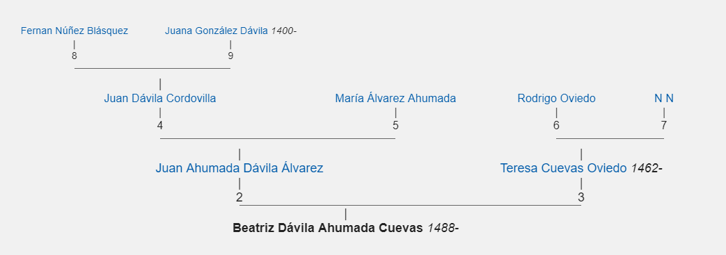 Puis en secondes noces, le 14 Mai 1509 à Gotarrendura prés d’Avila, Beatriz Dávila Ahumada de las Cuevas, née à Ávila en 1495 et décédée en novembre 1528 . Cette-ci est issue d’un noble lignage de « vieux chrétiens » du côté paternel. Qui contient cependant des noms terminée en es et en ez typiquement marranes.