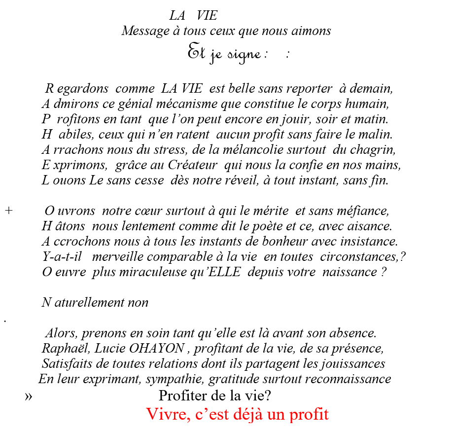 Voilà le dernier mail et le poème acrostiche sur son nom qu’il m’a écrit le 05 janvier comme il nous en écrivait pleins :